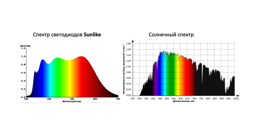 Мы производим светильники с использованием полноспектральных светодиодов серии «Sunlike» от компании «Seoul Semiconductor» (Корея). «Спектр излучения которых максимально приближен к солнечному, с индексом цветопередачи CRI 98,что делает его не только идеальным для растений, но и комфортным для человеческого глаза. Вы получите крепкие растения, которые будут радовать вас пышным цветением и здоровым видом.