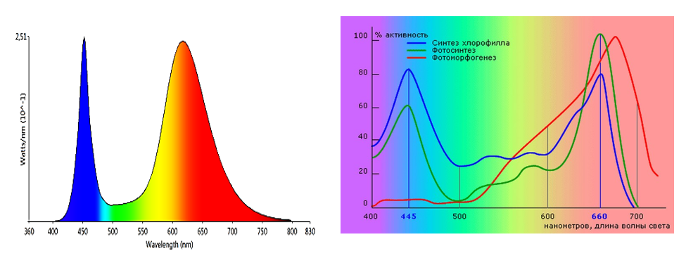 Изготовлен с применением фитомодулей серии Bloom компании Panasonic. Относится к полноспектральным светильникам. Спектр светильника имеет ярко выраженные пики в красной и синей областях спектра. Стимулирует фотосинтез, развитие корневой системы, подавляет вытягивание растений, увеличивает количество сухих веществ, делает растение низкорослым, коренастым, увеличивает количество междоузлий. Этот спектр рекомендуется для досветки рассады любых культур, для выращивания цветущих и плодоносящих культур : томаты, огурец, перец, все тыквенные культуры (кабачки, баклажаны, патиссоны и т.д.), а также для ягодных культур: клубника, малина, ежевика, голубика и т.д.